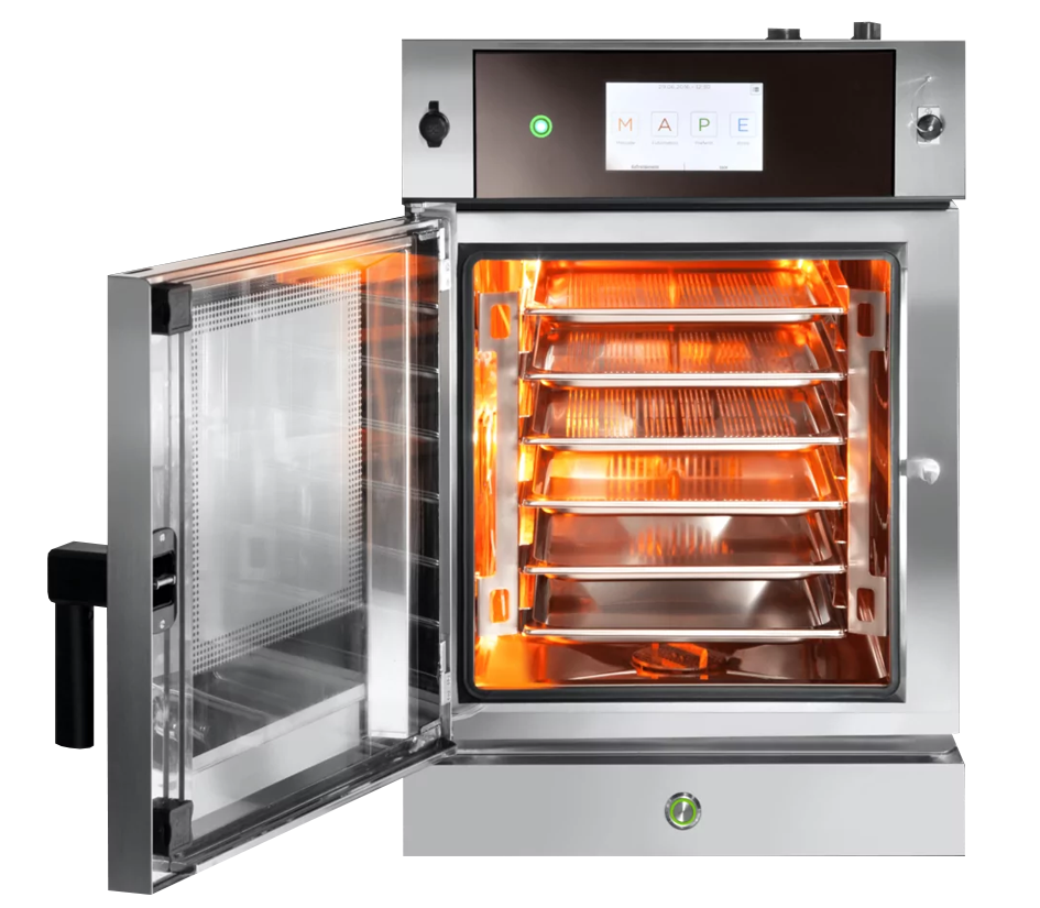 La cuisson par convection avec ventilation forcée, la cuisson à la vapeur avec injection directe, ou la cuisson combinée (convection + vapeur) peuvent répondre à tous les besoins de travail dans une cuisine professionnelle.